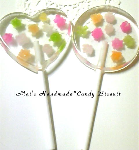 棒付きキャンディーなパーツ(本物の金平糖を樹脂で閉じ込めています)