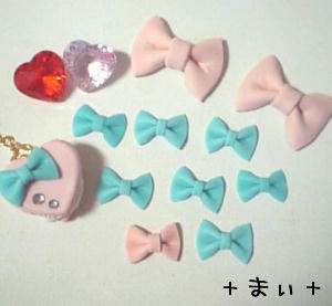 樹脂粘土でリボンとお花のパーツを作ってみました。