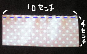 3のように折ったら重なった部分(青い線のところ)を縫います。