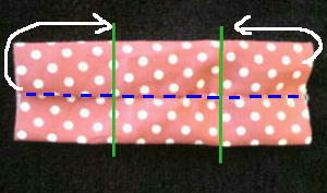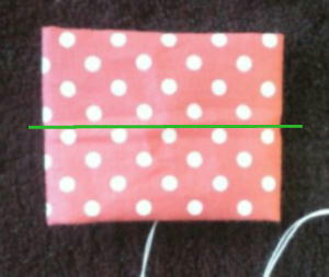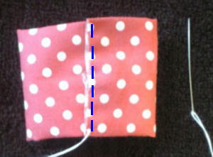 半分に折って青い線の場所を縫います。