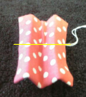そして真ん中(黄色の線の場所)を糸でぐるぐる巻きまーす!