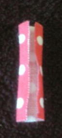 ちょっぴり放置しておいたリボンの真ん中に8で用意した布を真ん中に巻きます。